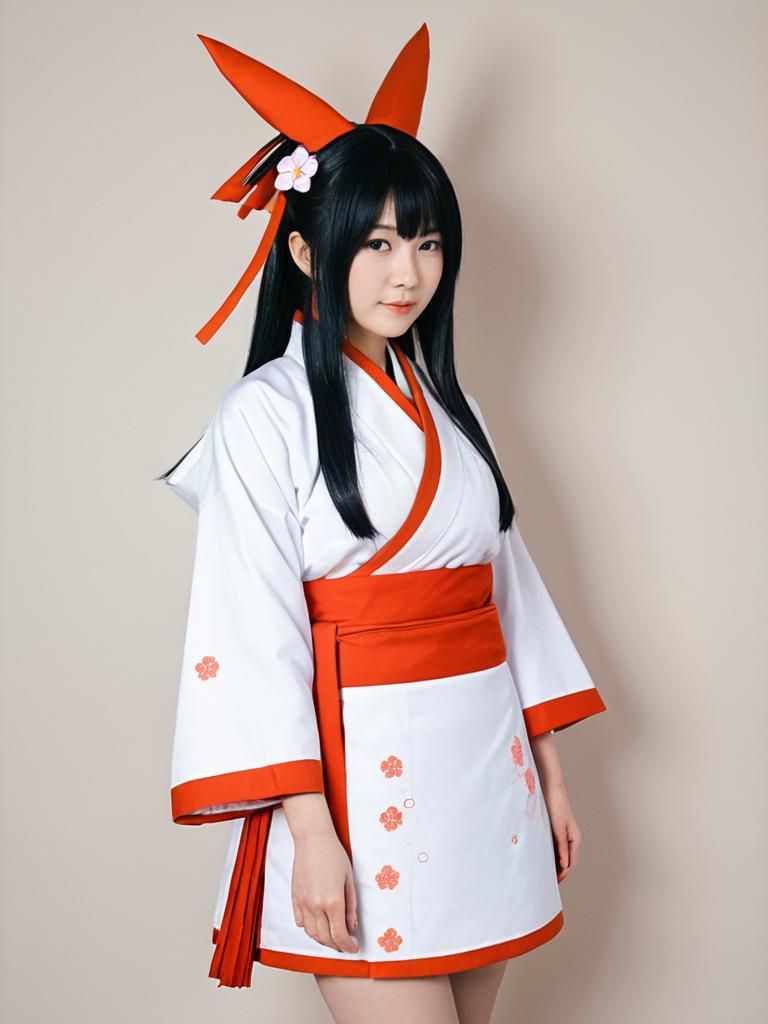 Woman cosplay. Wearing Uzume Sumeragi costume. Realistic photo. Dressed as Uzume Sumeragi --sref 1400