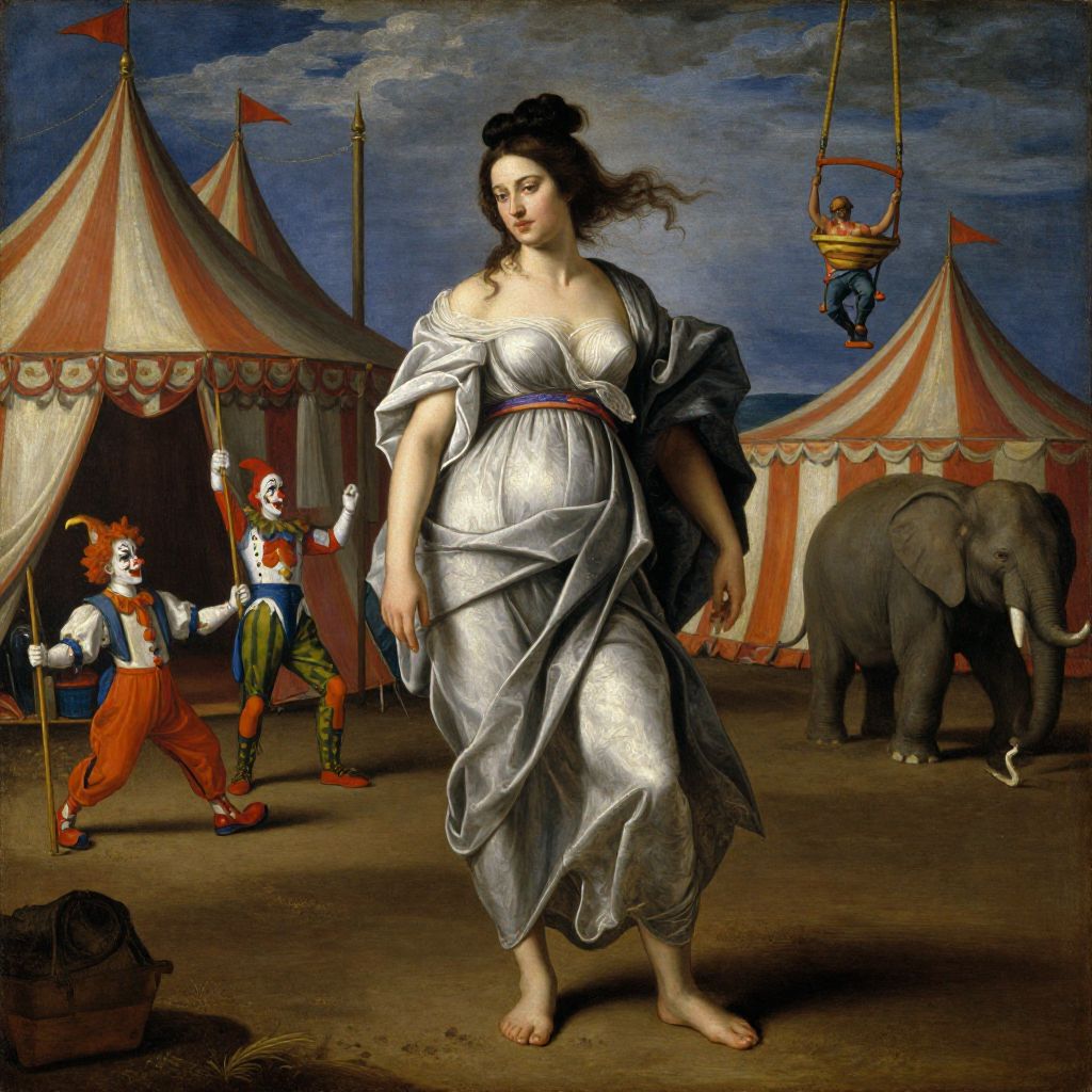 Bleeding a oil painting about a architect woman in Venezia during renaissance sending a text with her smartphone ar 2:3 v 5,