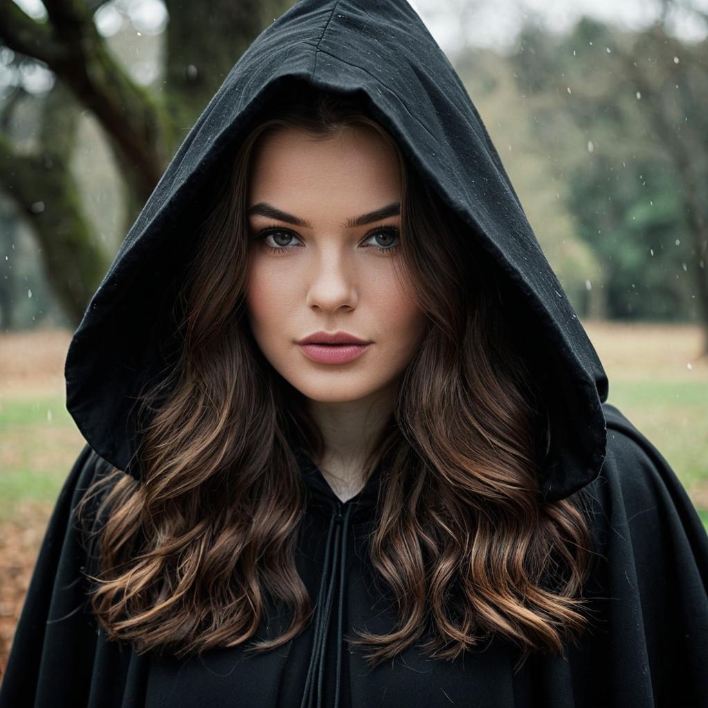 Mystical Witch in a Hooded Cloak