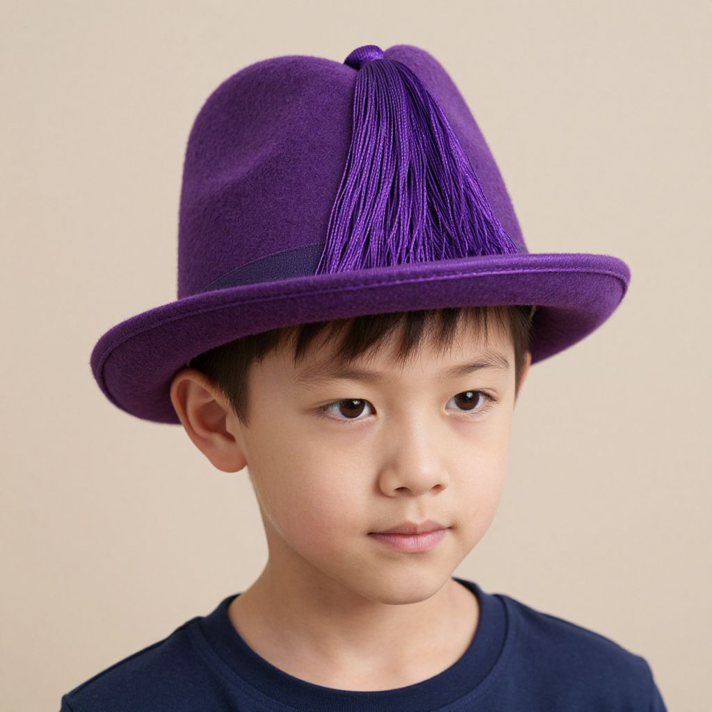 Purple Costume Hat, boy wearing a purple hat with a purple tassel