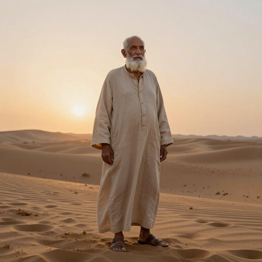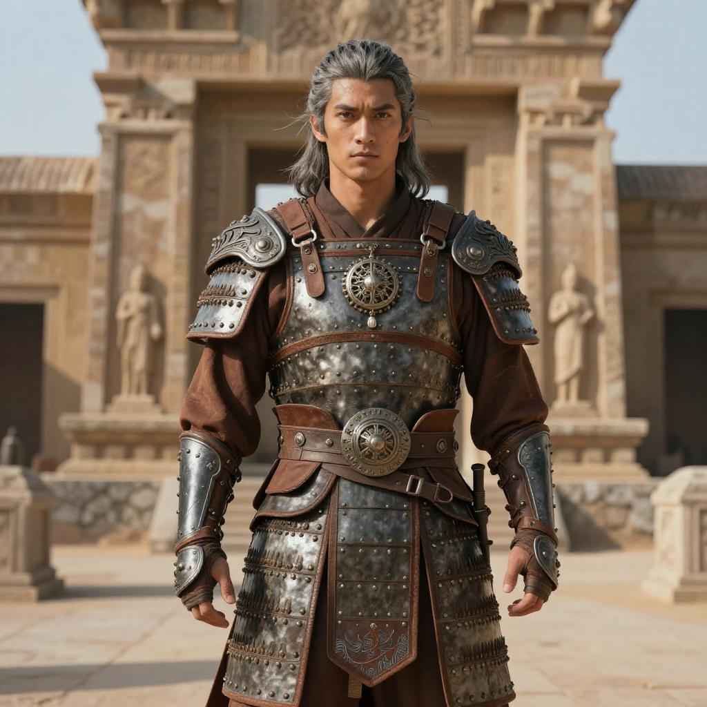 Elderly Samurai in Ancient Japanese Temple Garden