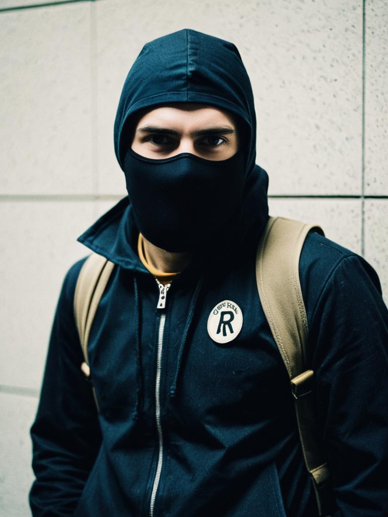 Man in Robber costume, cosplay editorial portrait, cinematic realism
