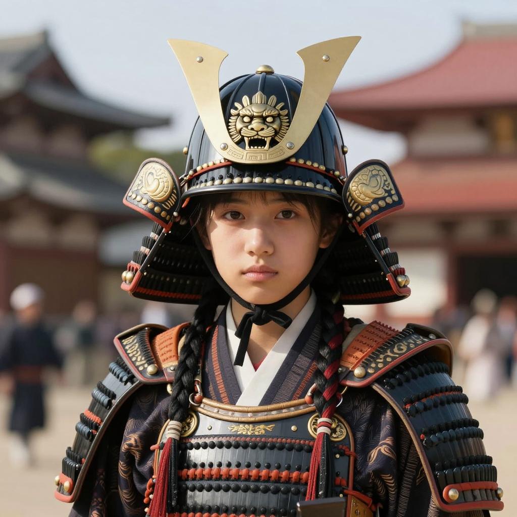 Young Girl in Traditional Japanese Samurai Armor
