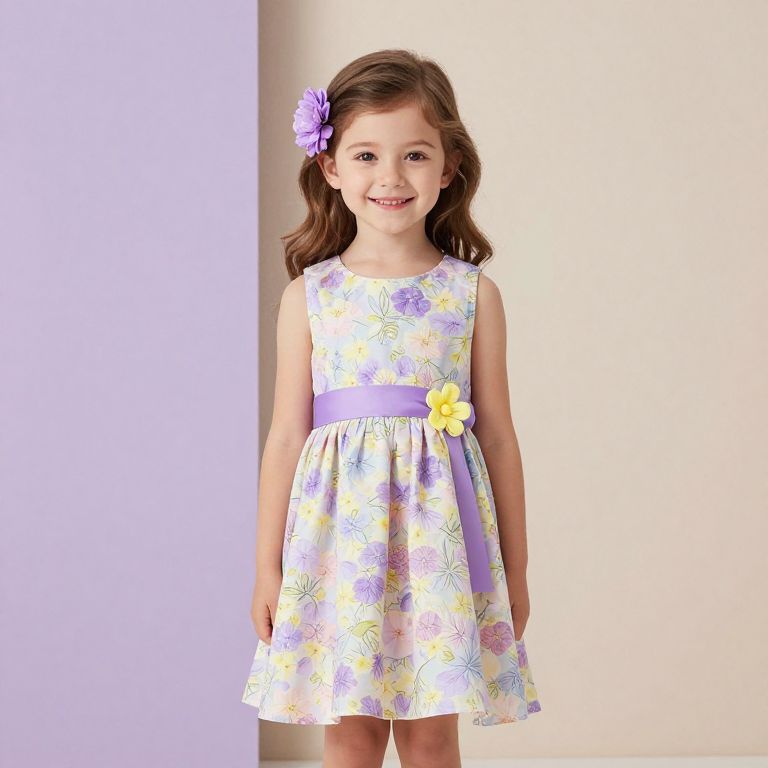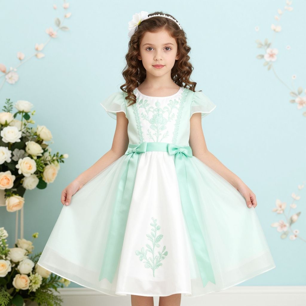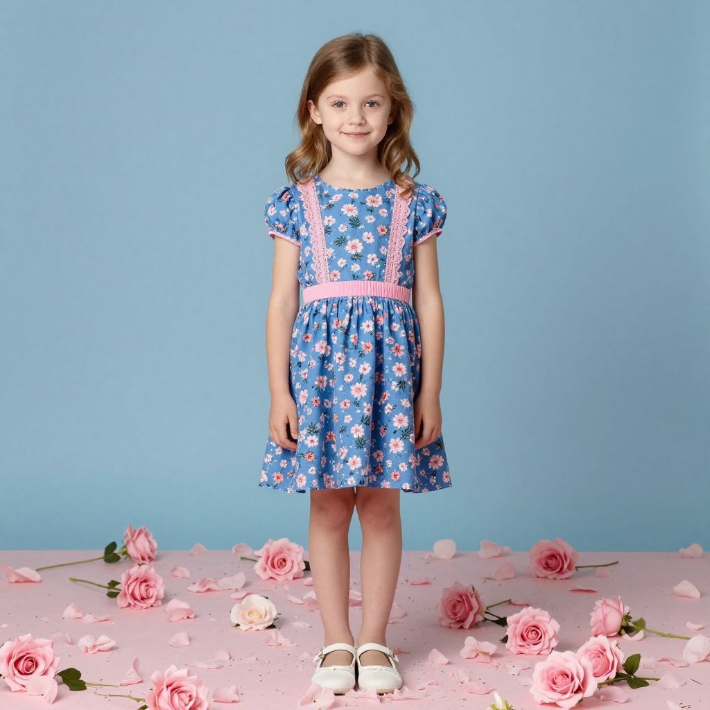 "Harry Callahan girl in sky blue dress with mini white flowers decoration, beautiful design and color, skirt,"