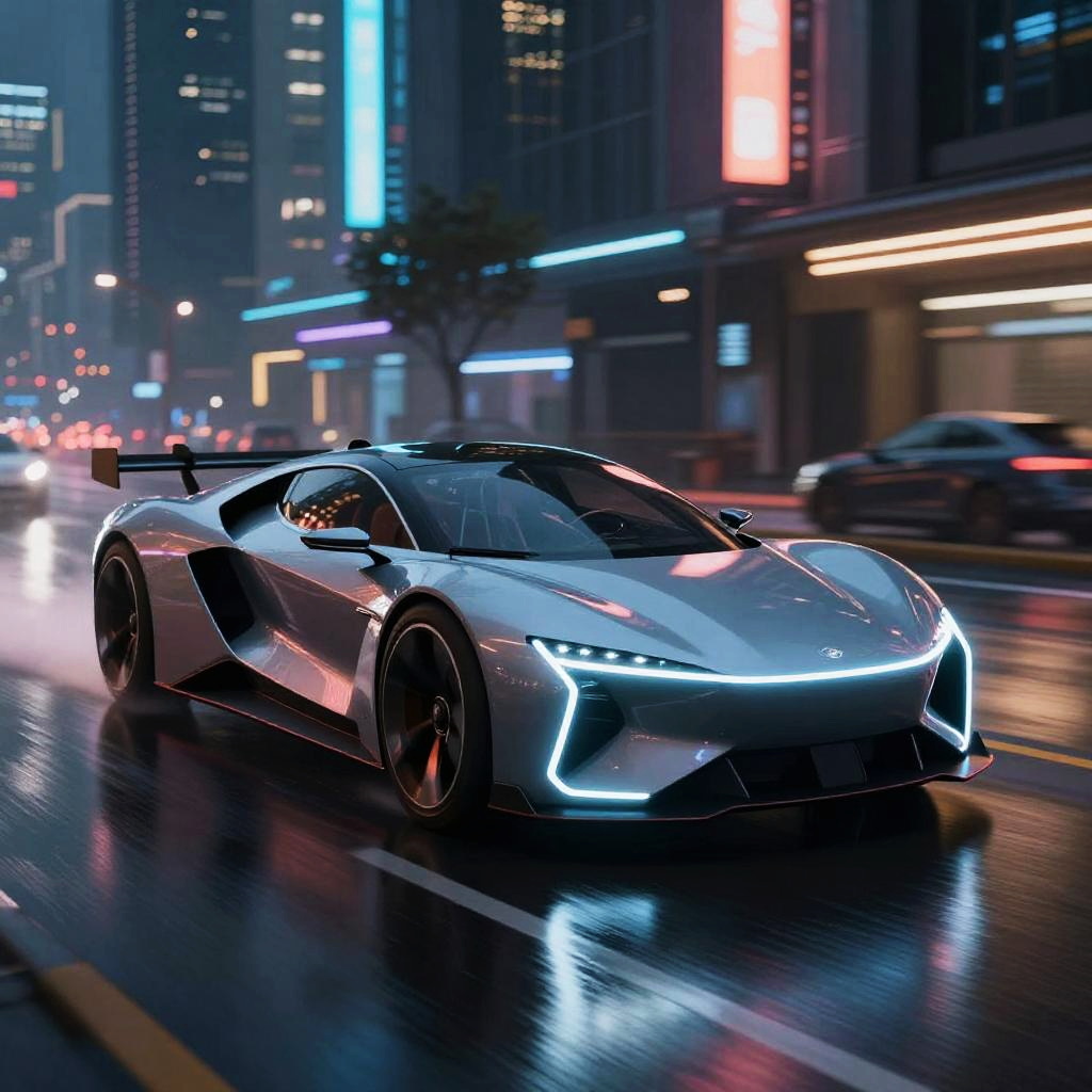 Futuristic Neon Electric Car Concept