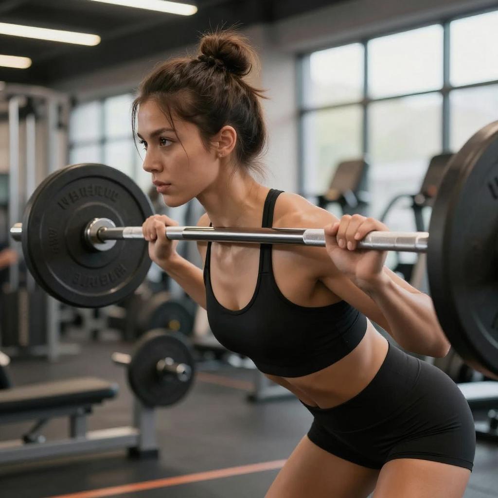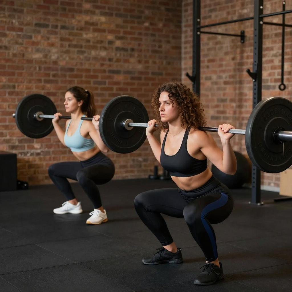 Women Squatting with Barbells in Gym