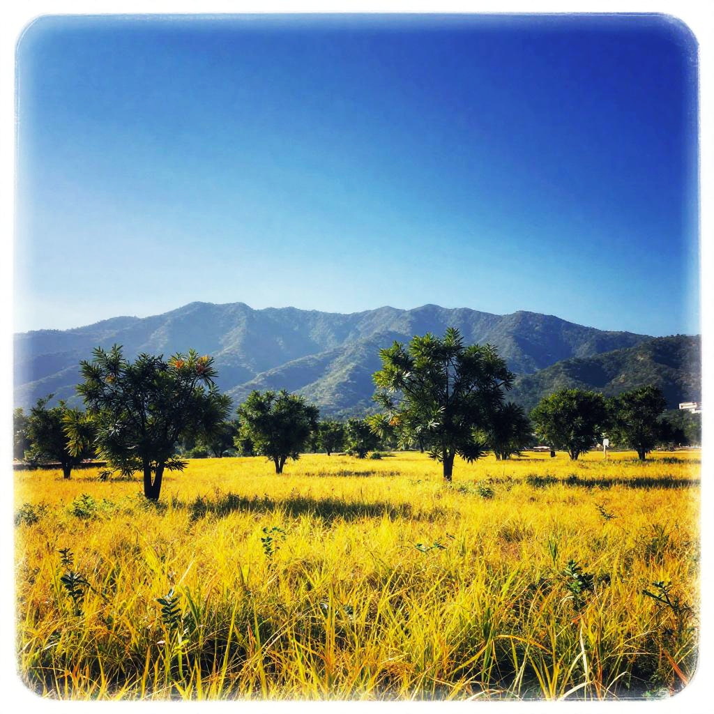 Vibrant Digital Landscape with Vintage Border