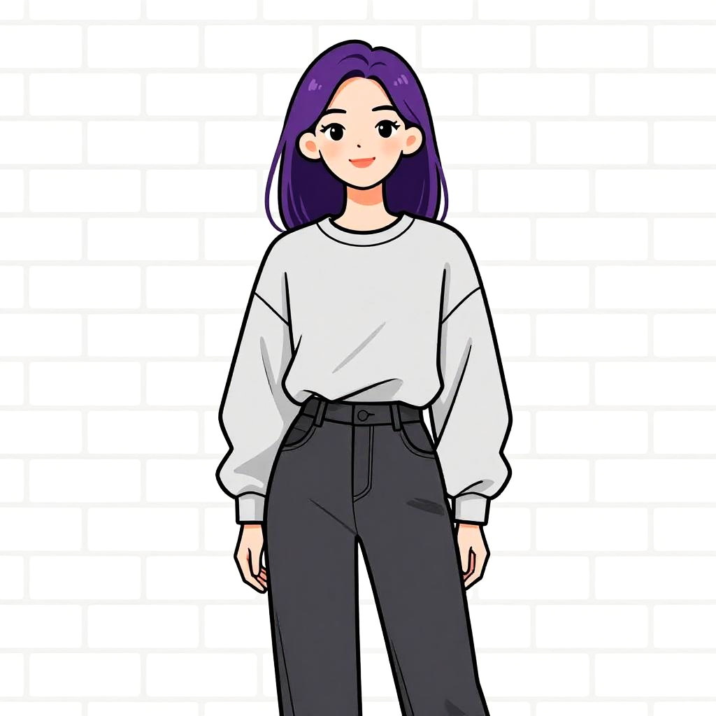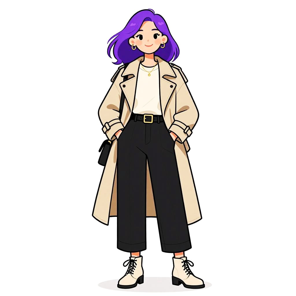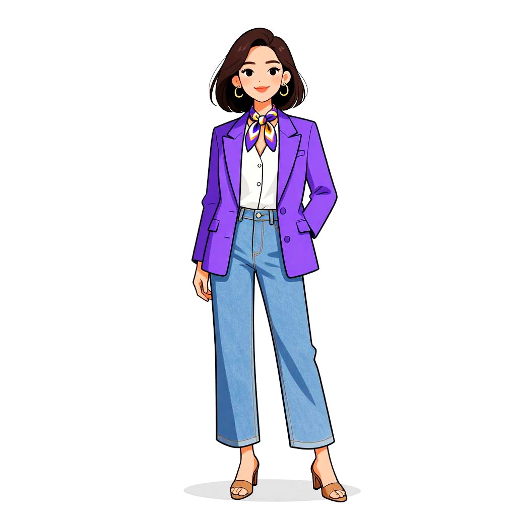 Woman with pretty face and pretty hair. Woman, minimalist, oversized single-breasted blazer in a neutral cream color with notched lapels and front flap pockets, coordinating straight-leg trousers, white ribbed sweater with a crew neck, no visible accessories or shoes, plain white studio background. --sref 1467