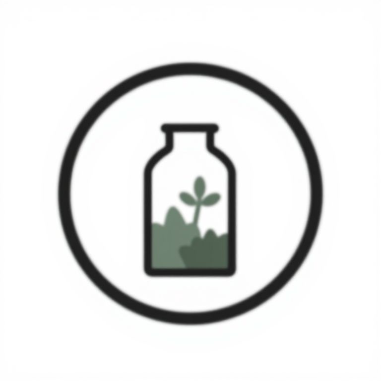 Minimalistic digital icon: Black outline circle with green silhouette of milk bottle containing plant leaves, set against white background.