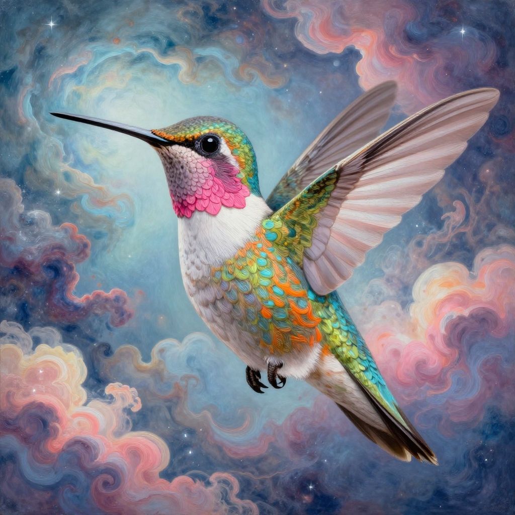 Vibrant Fauvist Hummingbird in Rainforest