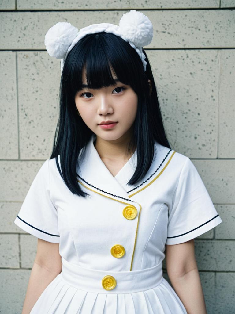 Sexy cosplay woman character wearing Misae Sagara costume. Realistic photo. Jane Doe dressed as Misae Sagara
