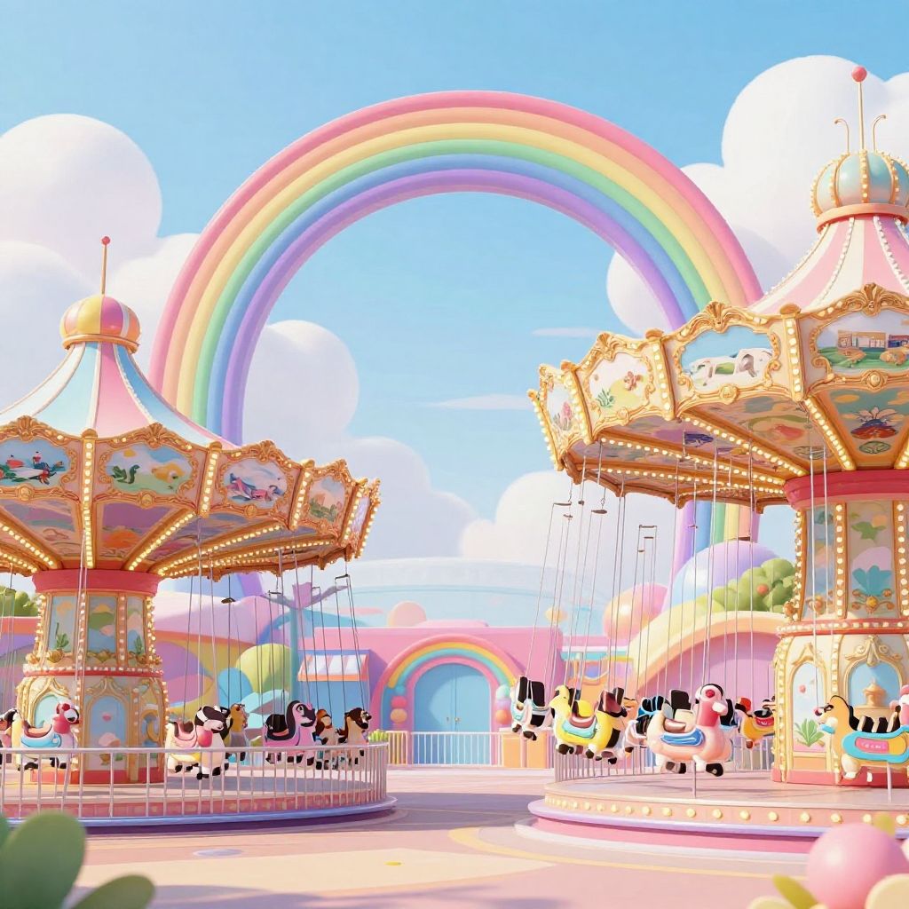 Whimsical Pastel Amusement Park Scene