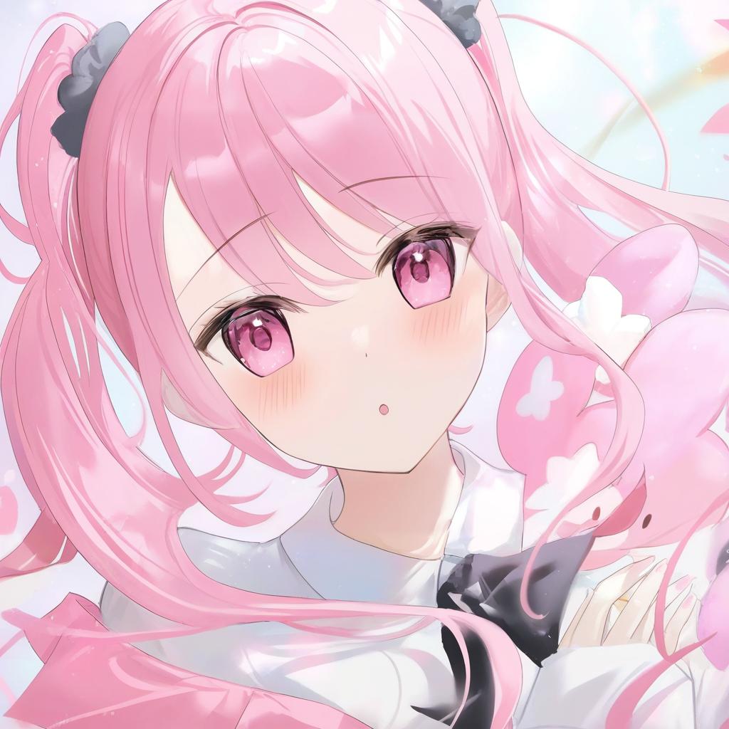 My melody, sanrio, 1girl, pink eyes, long hair, pink hair, long sleeves, by artist fuumi (radial engine), leet