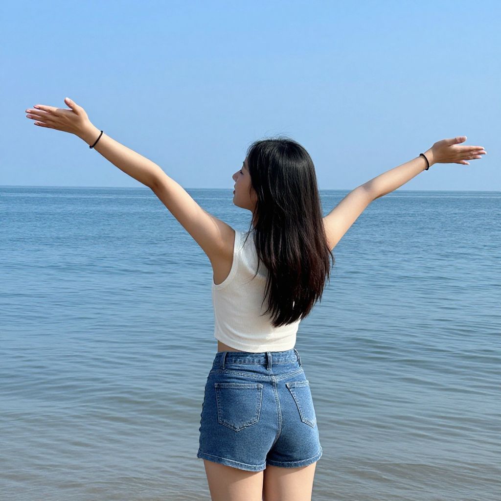 Young Woman Embracing Ocean Breeze
