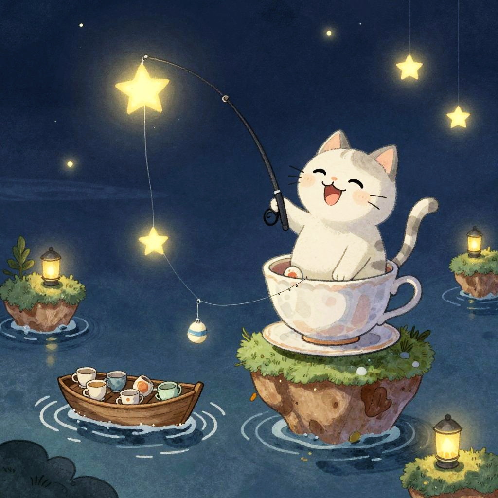 Cozy Floating Teahouse with Lantern-Birds