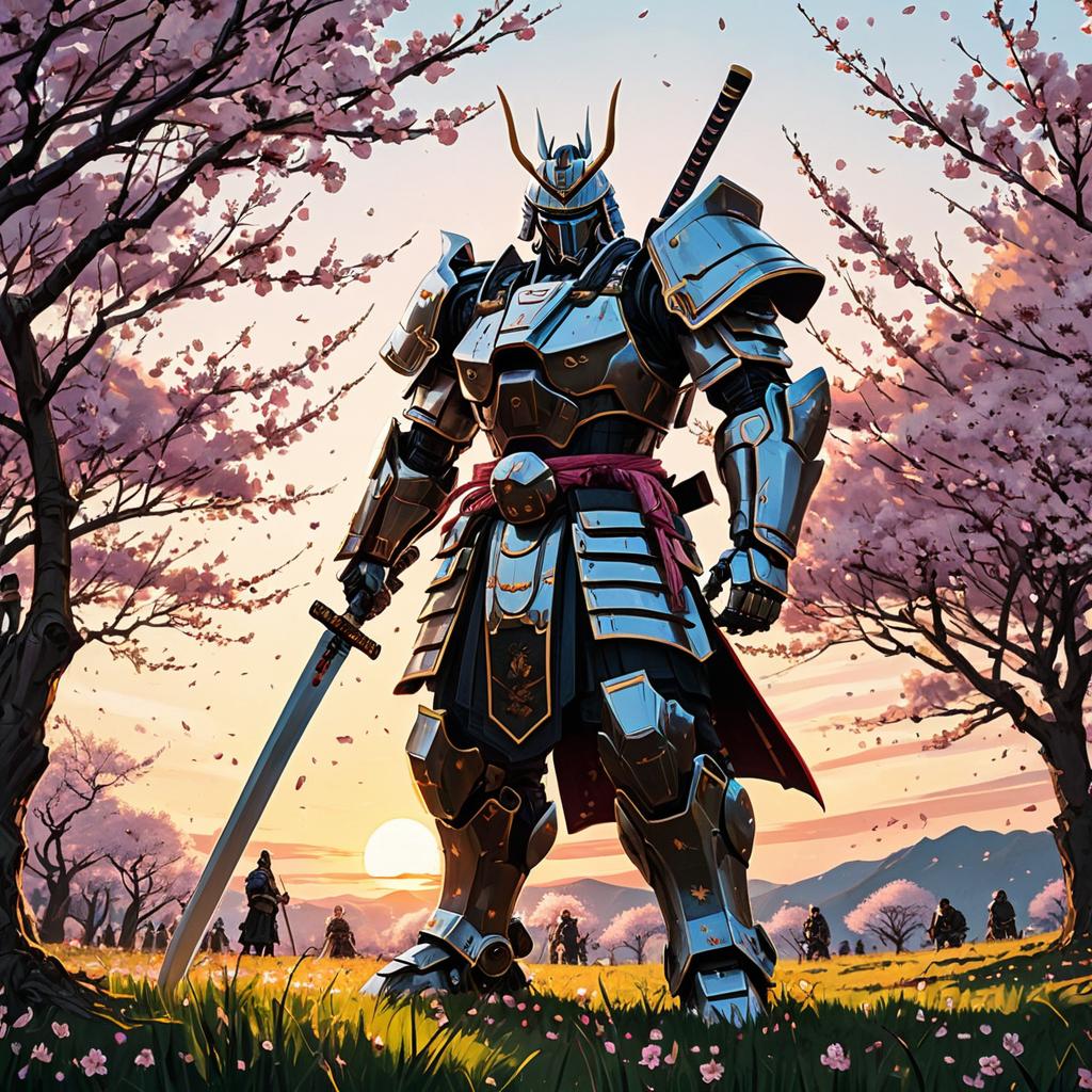 Cybernetic Samurai with Flaming Greatsword on Volcanic Crag