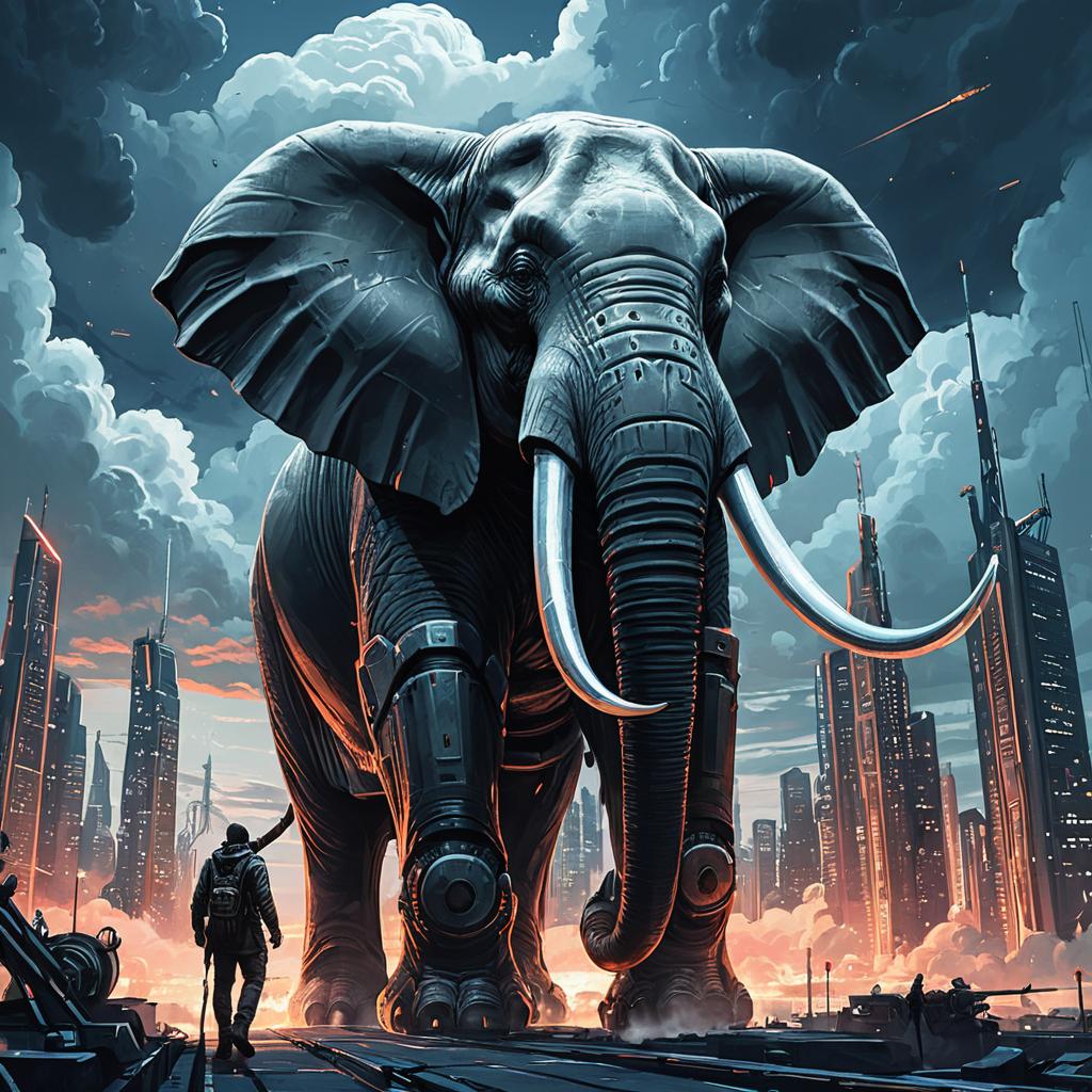 A colossal cybernetic samurai equipped with a flaming double-edged greatsword stands amid a ancient volcanic crag under stormy skies, elegant, highly detailed digital painting, ArtStation concept art, smooth painterly strokes, sharp focus, illustration by Krenz Cushart, Artem Demura & Alphonse Mucha.