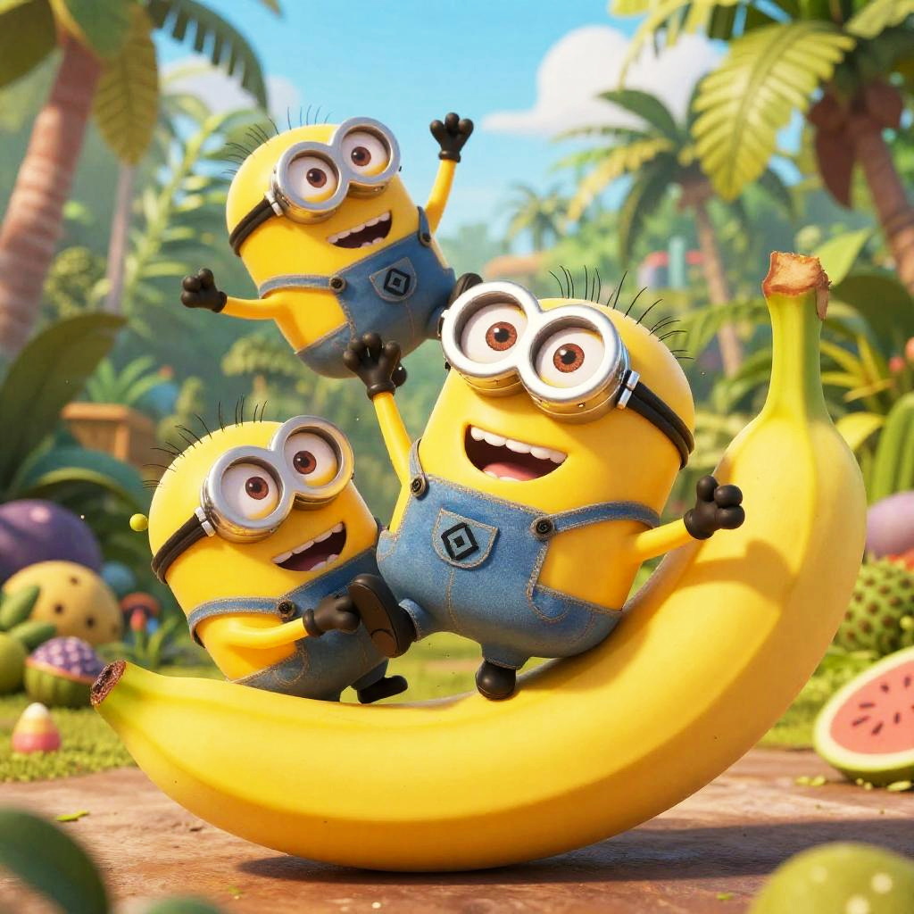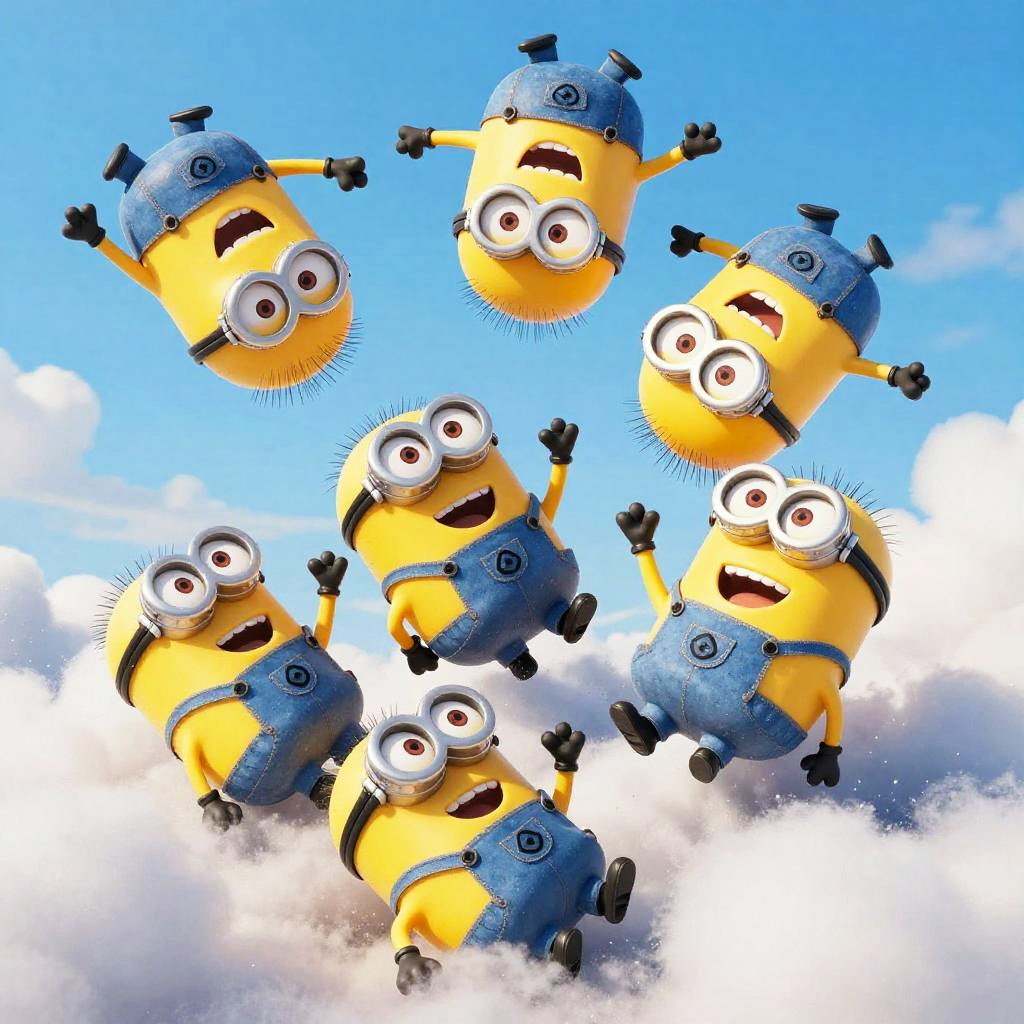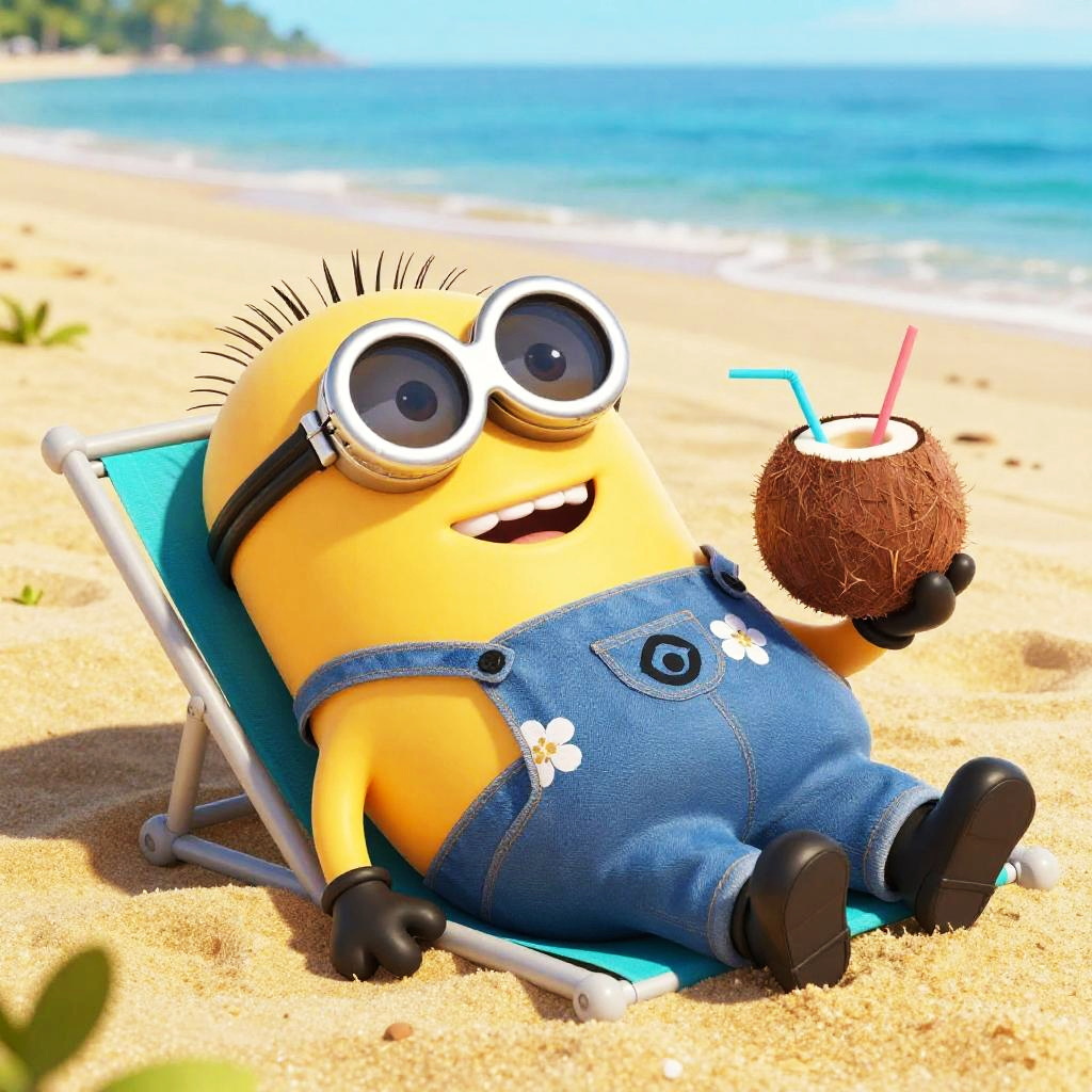 Minion holding a heart, cheerful animated character smiling warmly while holding a large, sparkling heart, colorful background with floating hearts and rays of sunshine, joyful and heartwarming scene