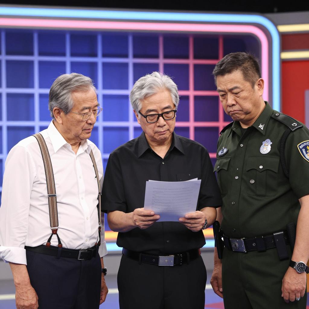 Six men in a room. Four police officers in uniforms, hats, and sunglasses. One officer with yellow-tinted glasses. One man in a suit holding a brown folder, facing the officers. Water cooler in the background. Blinds on the window. One officer with a blue plaid shirt and tan t-shirt. Officers standing in a line, facing the suited man. One officer on the left with a partially visible uniform. Room has a door labeled "CHIEF."