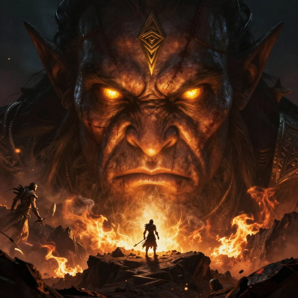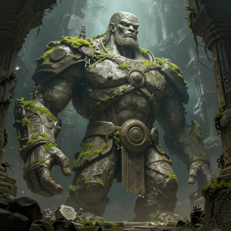 Giant Colossus Over Ancient Cityscape