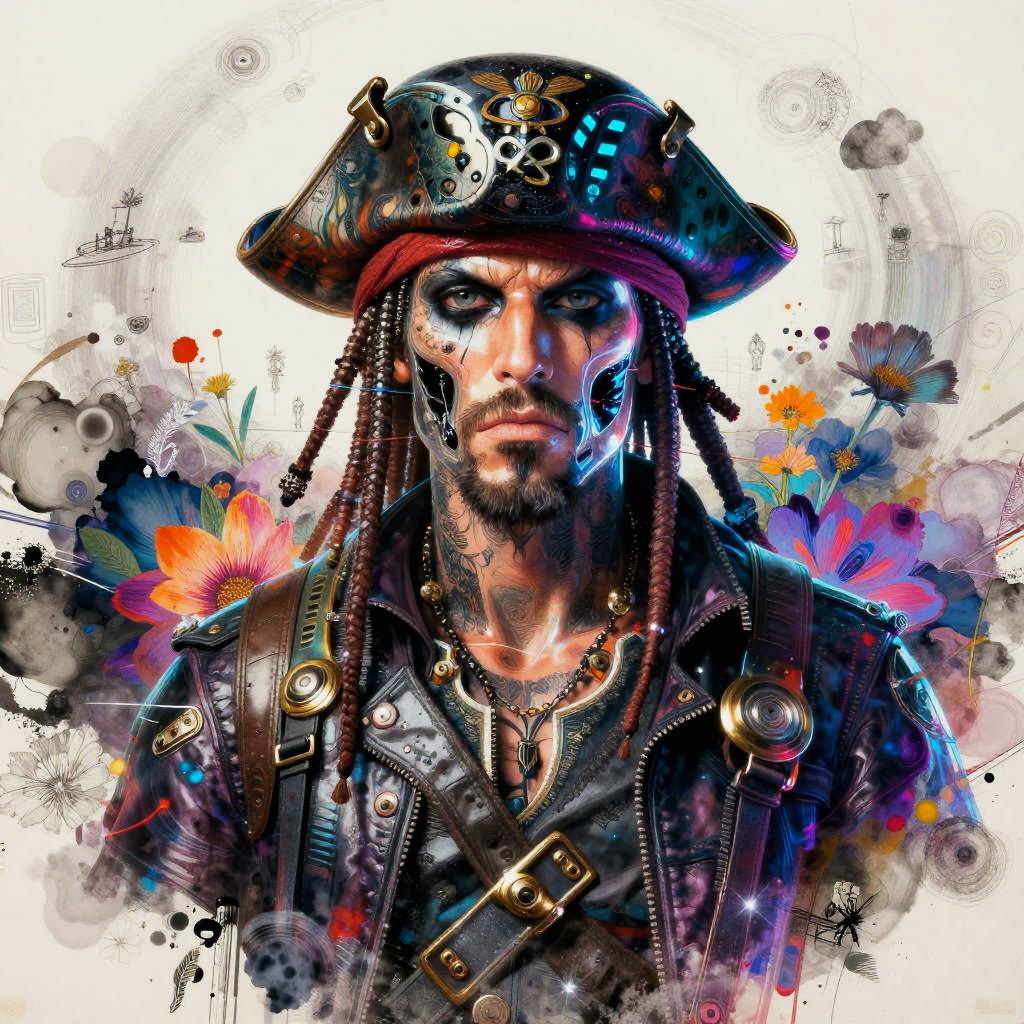 Neon Space Pirate Portrait Art