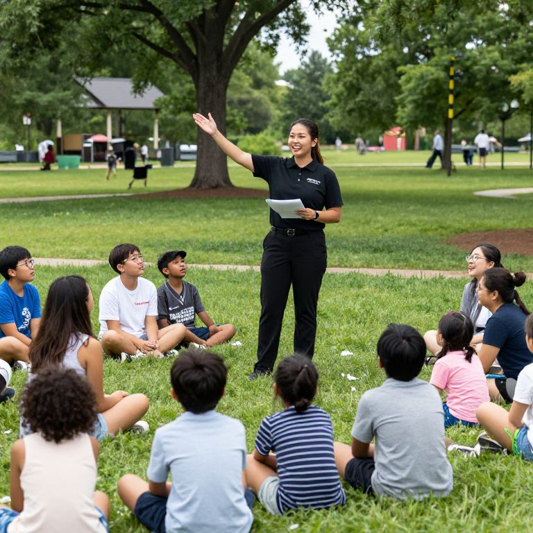 Photo of a park staff leading a program for families at the American Tobacco Trail