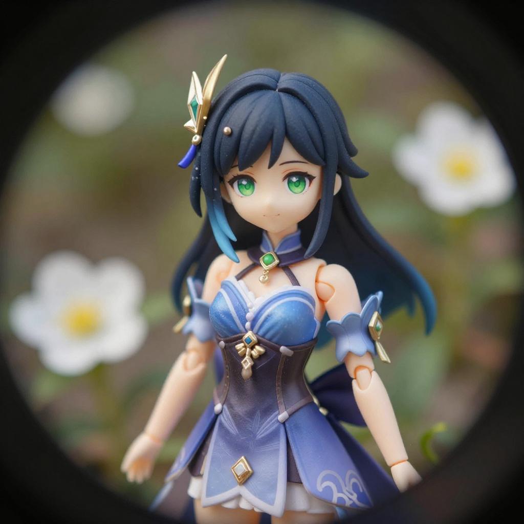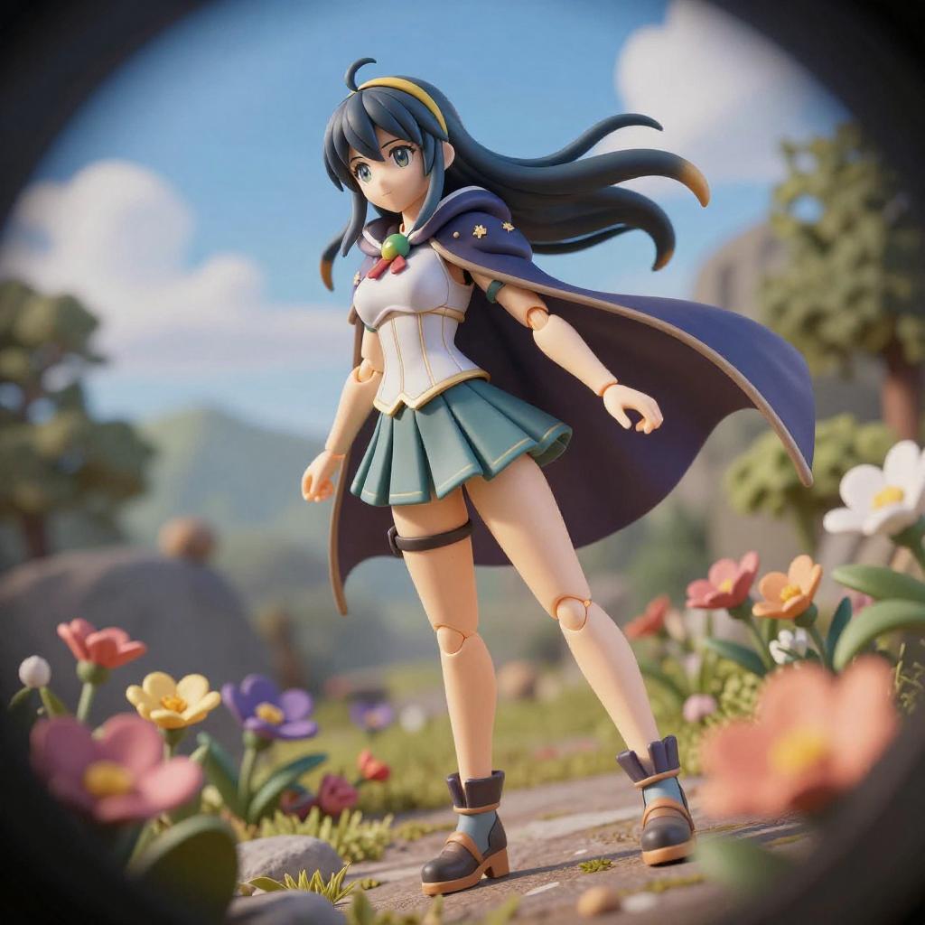 (masterpiece, best quality, safe, absurdres, foreshortening, fisheye:1.2), photo of a highly detailed (figma:1.2) of (megumin_1000, cape:1.3), doll_joints, 1girl, solo, (flowers:1.2), outdoors, [realistic, 3d, 3dcg, physically based rendering, rendered in blender, subsurface scattering]