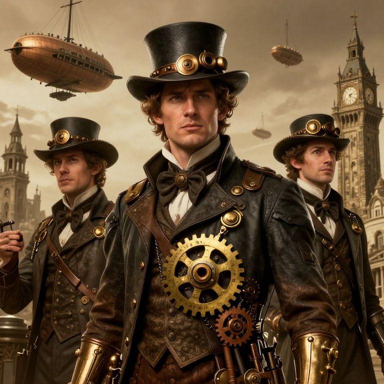 Steampunk Victorian Characters Illustration
