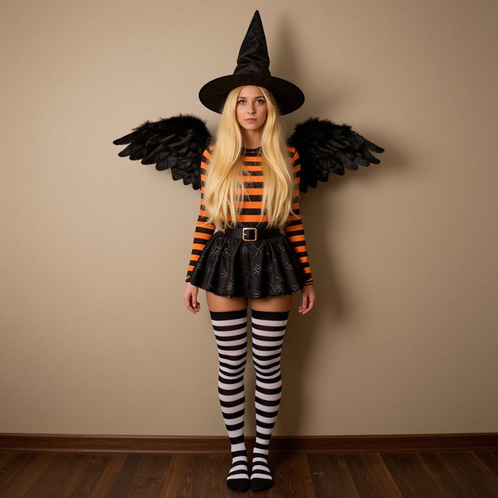 Blonde Witch Woman in Striped Outfit