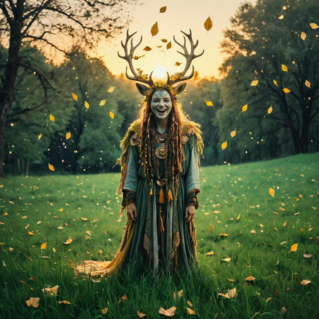 Whimsical Forest Spirit in Sunset Glow