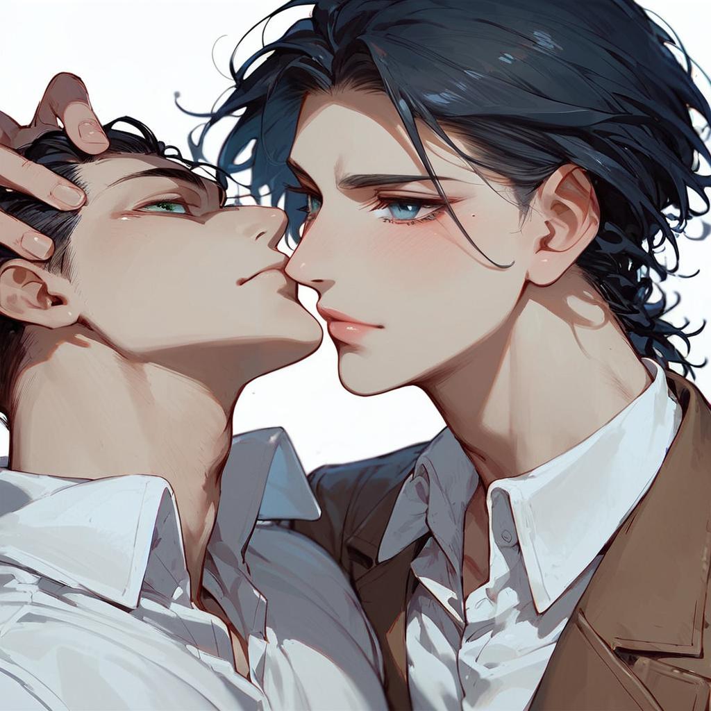 Digital artwork of a handsome young man with a well-groomed beard and wet skin, posing with hands near his ears against a plain white background. The man has dark hair, light brown eyes, and wears a white shirt, with a focus on detailed facial features and realistic skin texture.