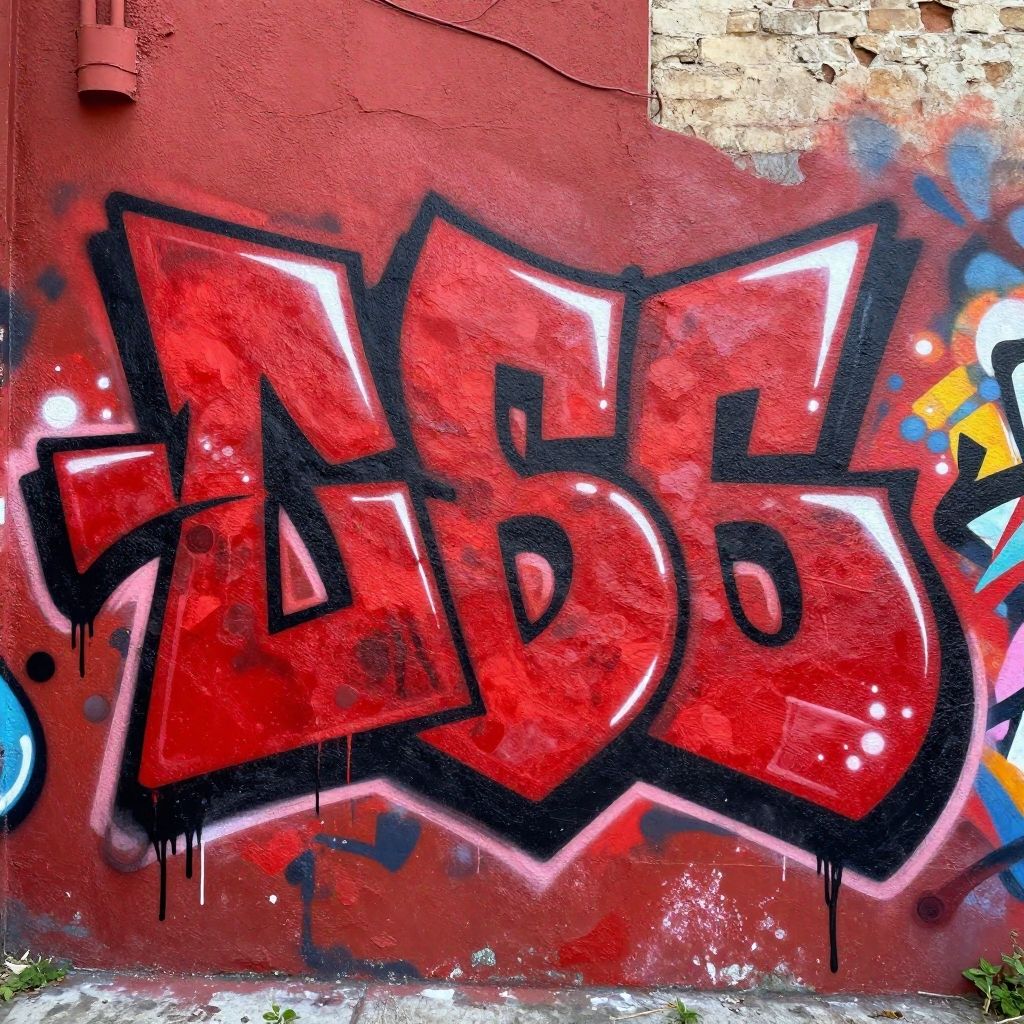 Red graffiti background showcasing street art murals, vivid reds blended with black and white highlights, dripping paint effects, urban alleyway setting, textured brick wall surface