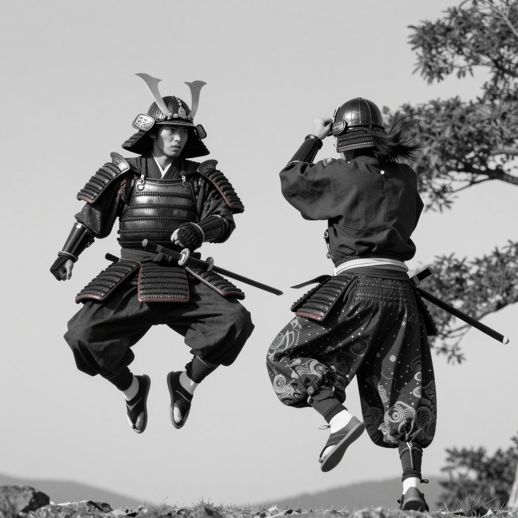 Dramatic Samurai with Multiple Swords
