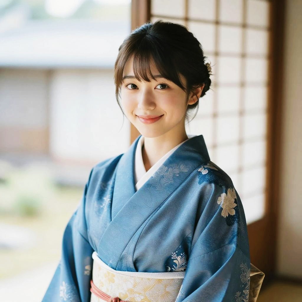 Best quality, ultra high res, (photorealistic:1.4), RAW photo, (upper wai BREAK 1.4), (bokeh:1.7), (Window light only:1.6), (in bright japanese-style room:1.5), (bright:1.5)1japanese girl, (solo), (smile:1.2, open mouth:0.7), (dark brown eyes), natural skin, (brown updo hair, bangs), standing(blue silk kimono), bright japanese-style room, window light only, bokeh background, natural skin tone, female japanese, dark brown eyes, brown updo hair with bangs, blue silk kimono, standing pose, gentle smile, open mouth subtle