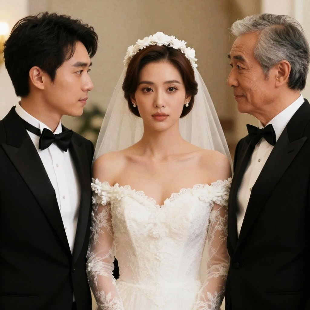 Black and white photograph of three people. Man on left with short, slicked-back hair, serious expression, wearing jacket. Woman in center with wavy hair, slight smile, wearing light shirt, hand on man's shoulder. Older man on right with white hair, bow tie, smiling. All stand close together, facing camera.