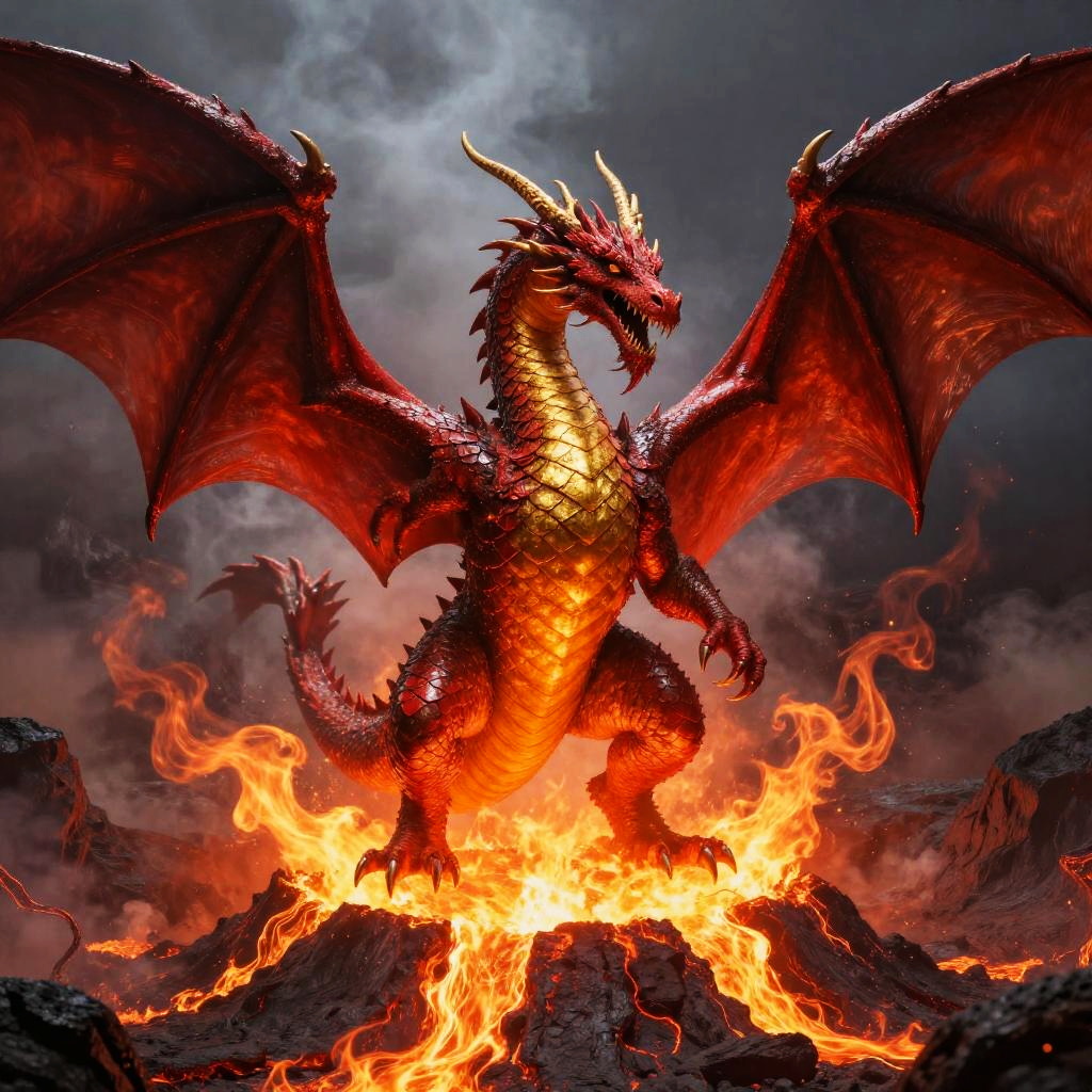Fiery Dragon Emerging from Volcano