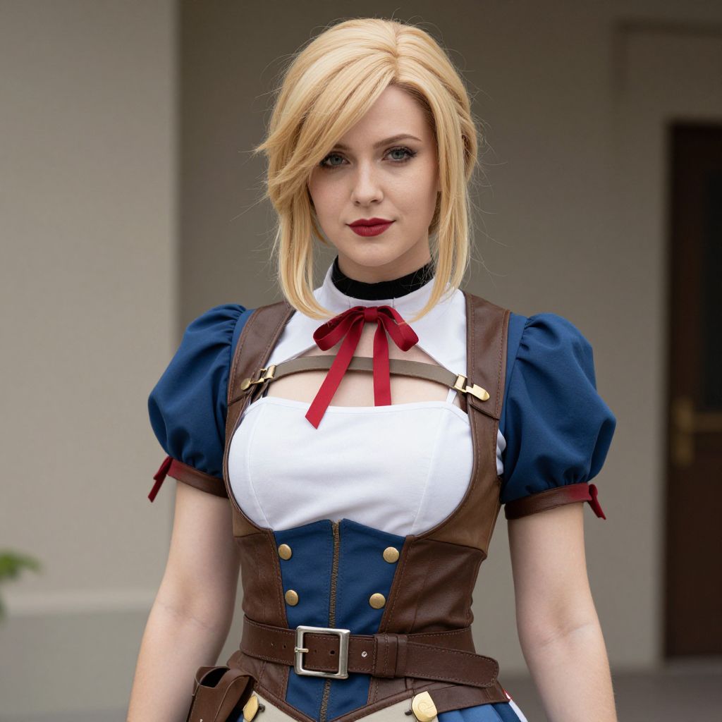 Sexy cosplay woman character wearing Nice Holystone costume. Realistic photo. Jane Doe dressed as Nice Holystone. Realistic photo, caucasian woman, pretty face
