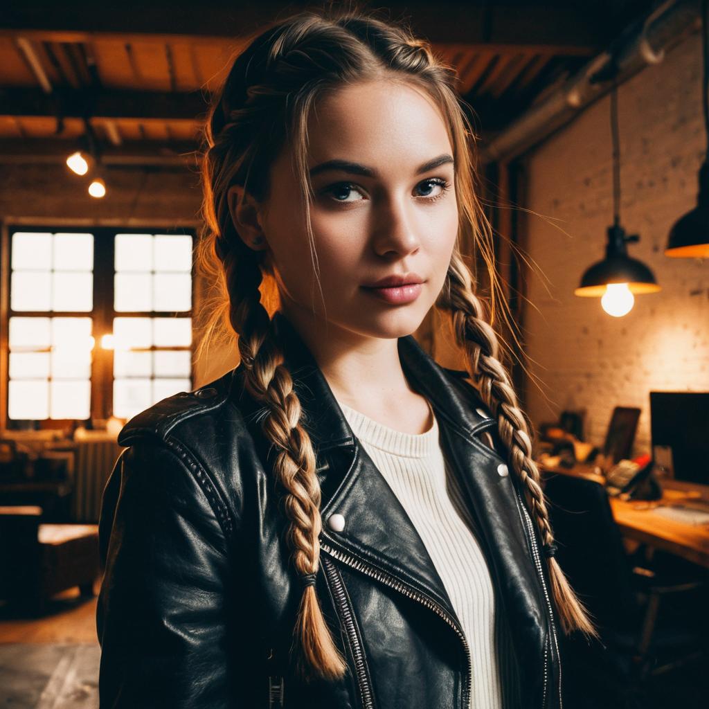 Young Woman with Four-Strand Braid in Urban Streetwear