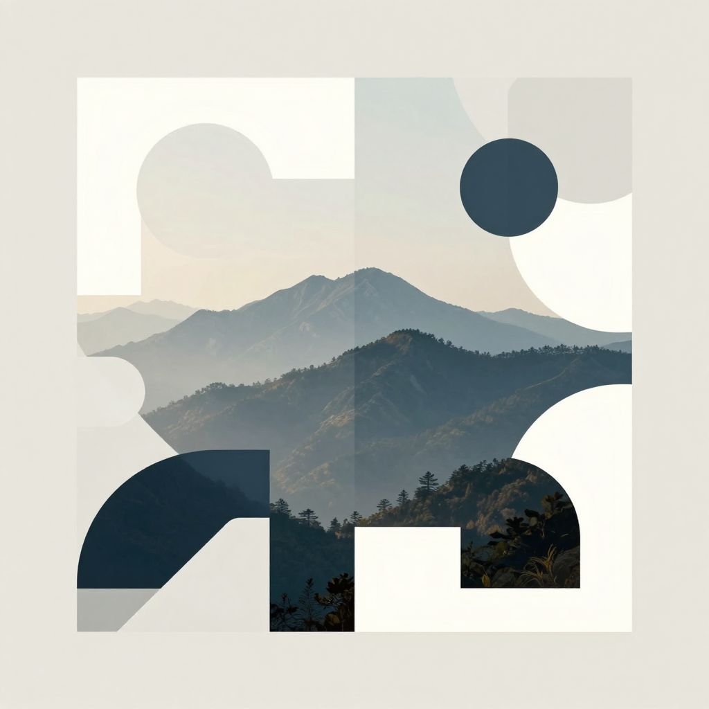 Serene Mountain Meets Abstract Geometry