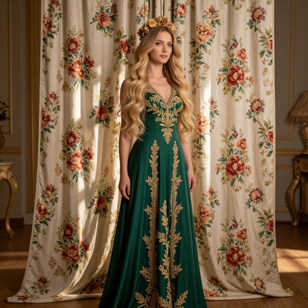 Blonde Woman in Ornate Green Robe