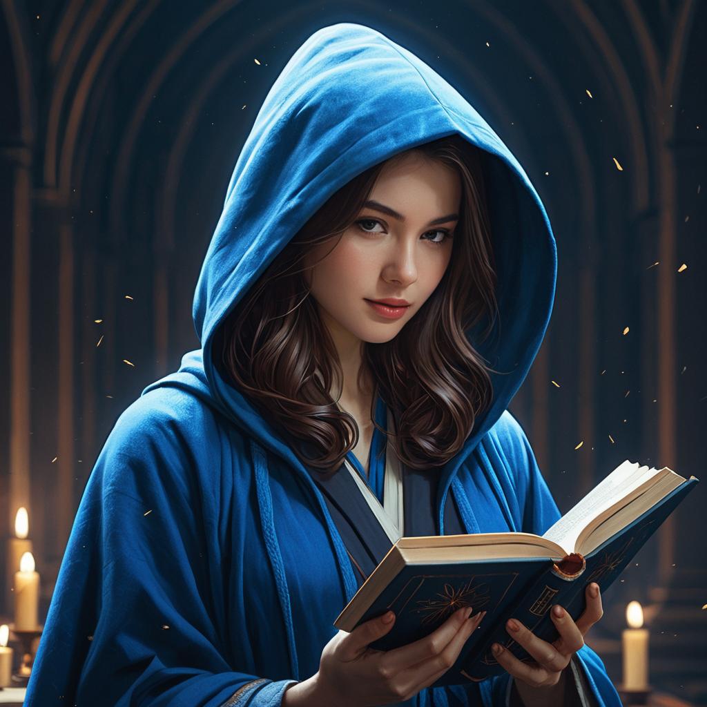 Painting of a cute anime girl as a cloaked tech priest holding a book, cybernetic enhancements, by makoto shinkai, by akihiko yoshida, zdzislaw beksinski, lewis jones, dariusz zawadzki, wayne barlow, warhammer 40 k, cold hue's, warm tone gradient background, concept art, digital painting