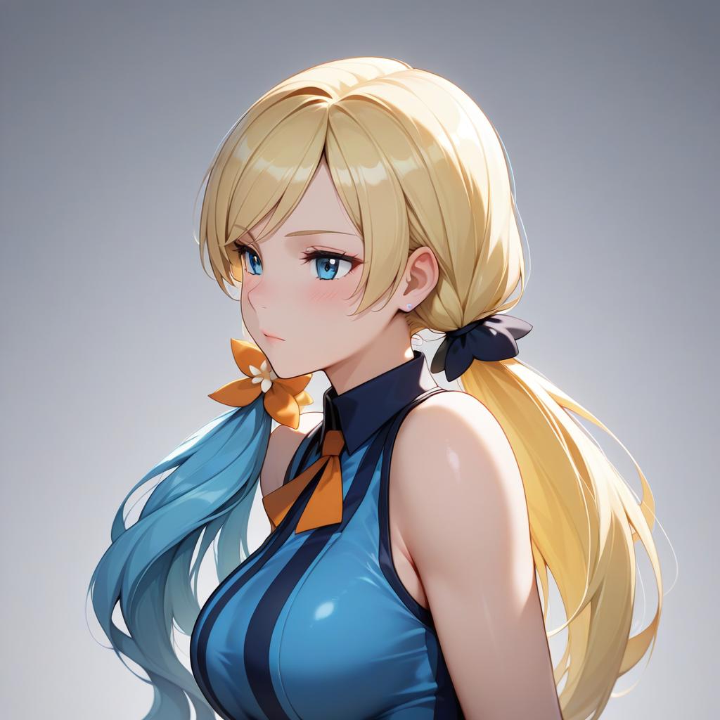 Ace trainer (pokemon), pokemon, 1girl, long hair, blonde hair, blue hair, by artist gins, illustrious