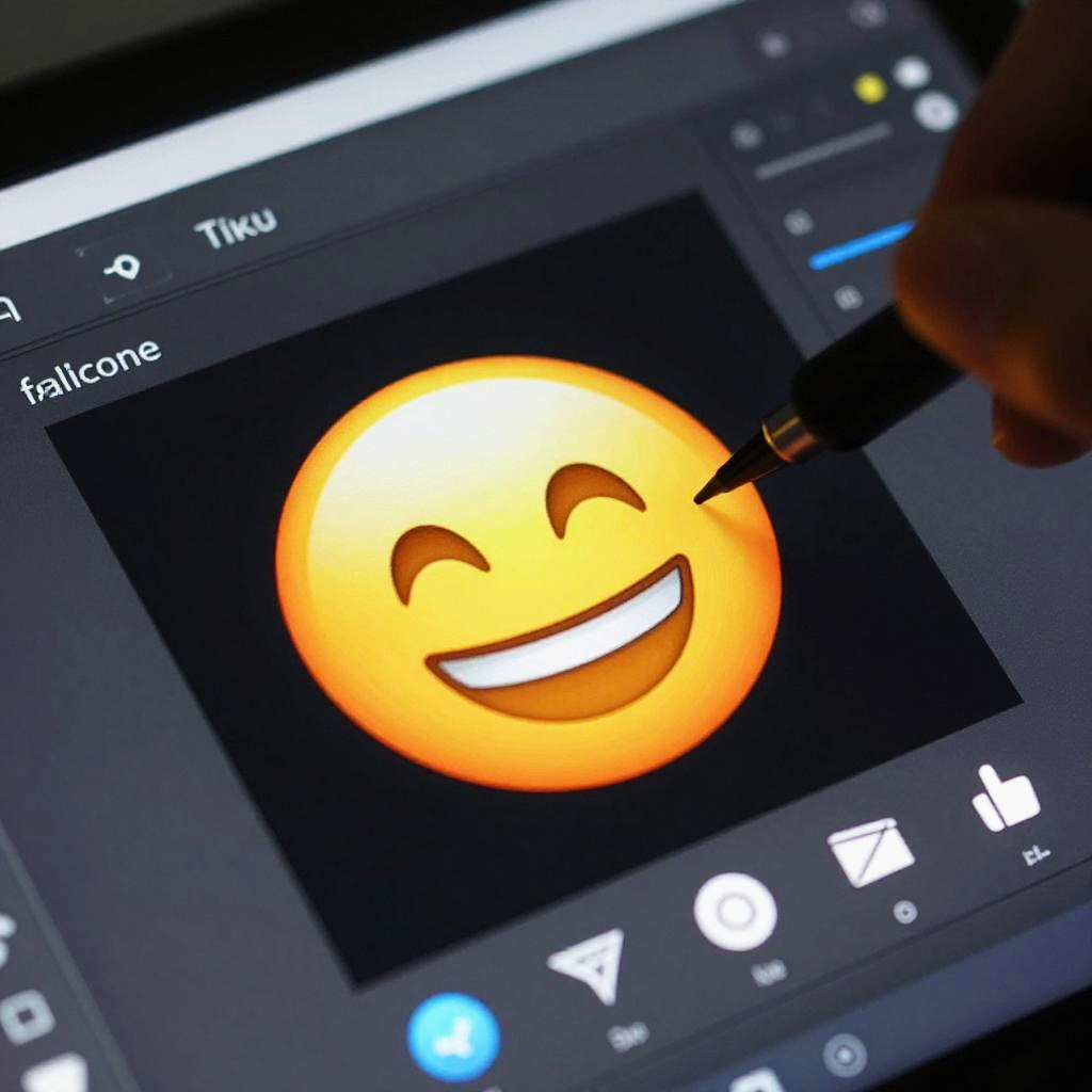 How to remove an emoji from a picture, close-up digital screen showing an image with a smiling emoji being removed by a sophisticated editing tool, clean and sharp UI with glowing icons, futuristic tech vibe, focus on the action of erasing the emoji.