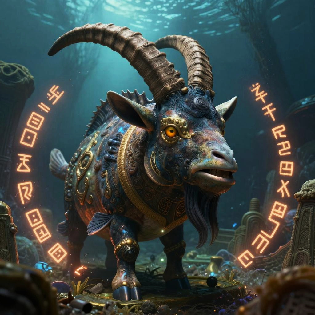 Cyberpunk Robotic Goatfish Underwater