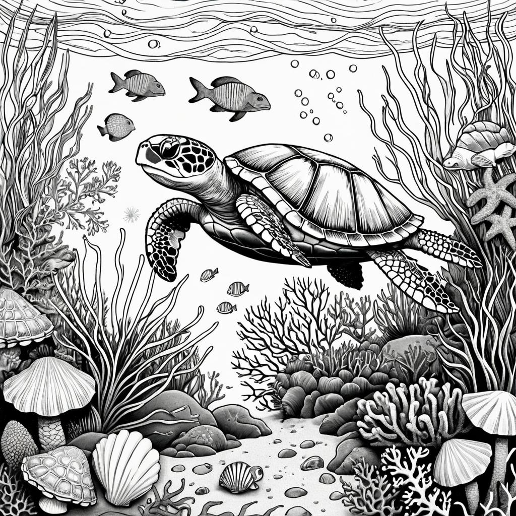 Quirky kitchen scene with utensils, fruits, and a cat, hand-drawn sketch style, a curious cat knocking over a jar, designed for a children's coloring book, playful and vibrant.