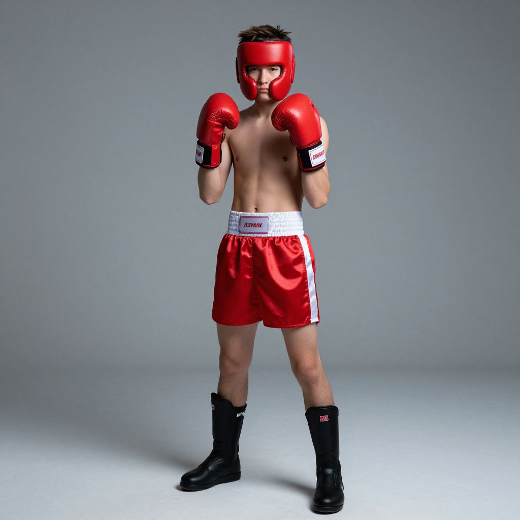Boxer costume man fancy, boxing gloves, 1boy, male focus, solo, shorts, gloves, boots, belt, standing