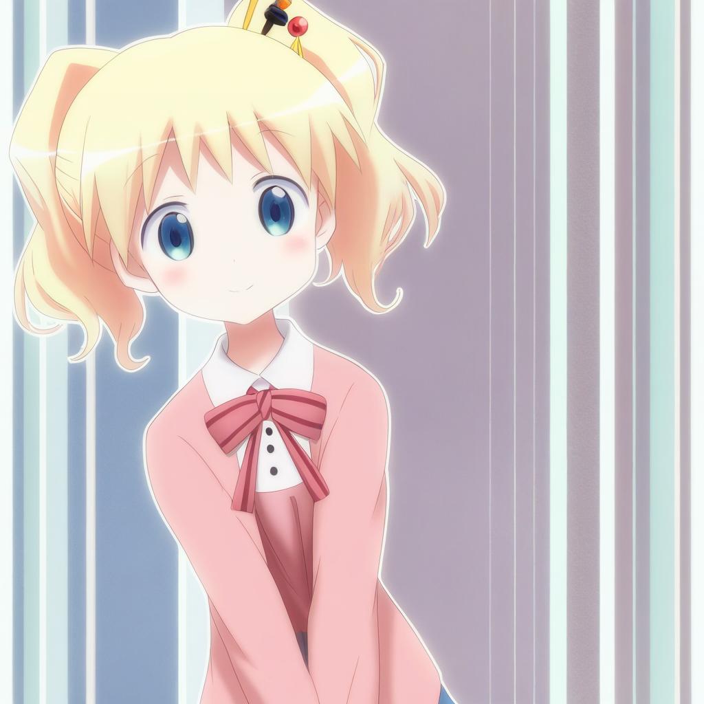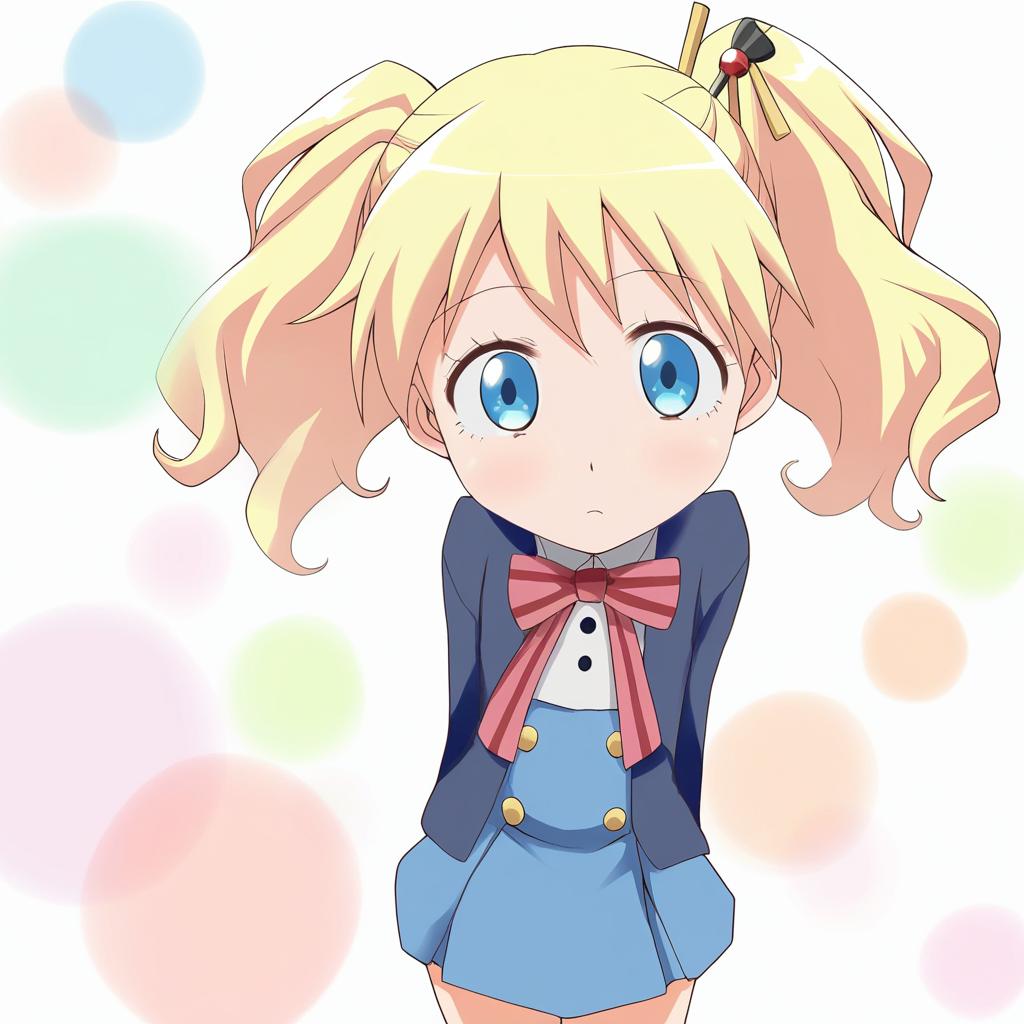 Alice cartelet, kin-iro mosaic, 1girl, blue eyes, blonde hair, short hair, long hair, twintails, school uniform, by artist kloah, leet