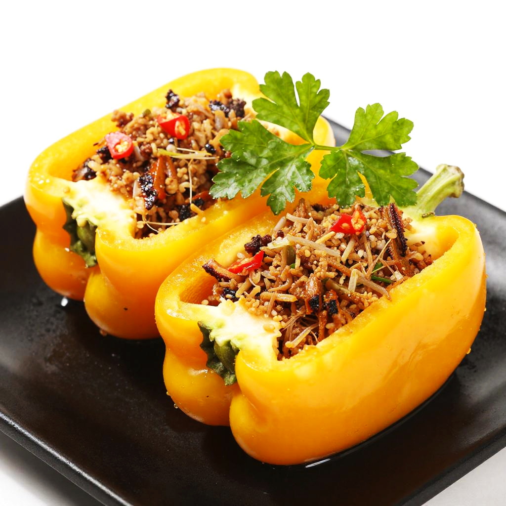 Stuffed Yellow Bell Peppers with Parsley Garnish