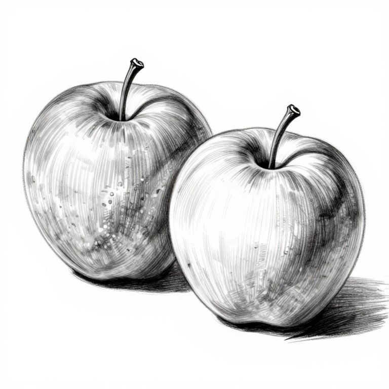 A detailed hand-drawn sketch of two apples rendered in a realistic style with subtle shading and texture, showcasing the intricate lines and shadows typical of vector art.