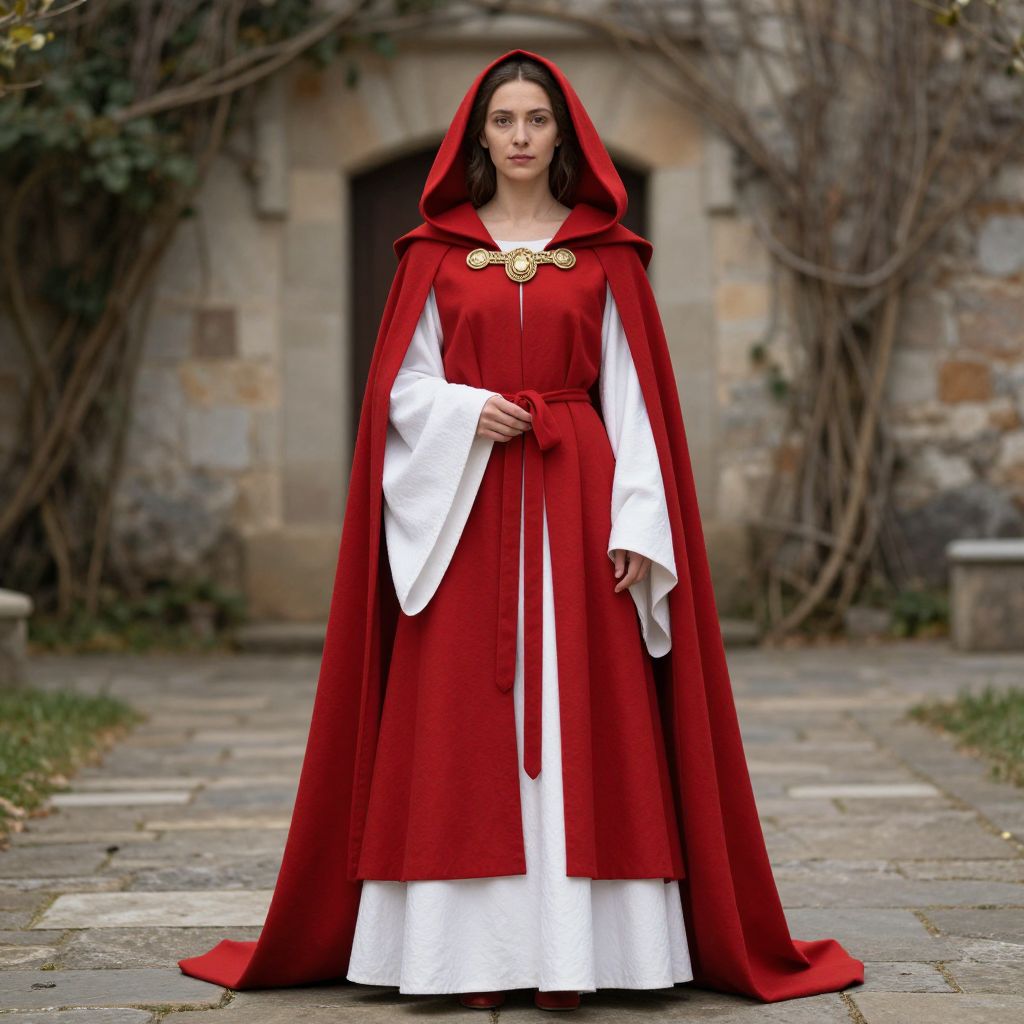 Medieval Woman in Red Hooded Robe